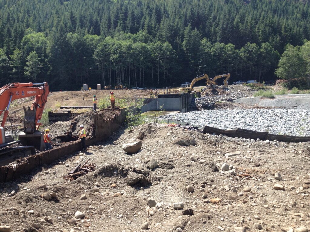 BC Hydro provided a design for reference and the Quantum Murray team redesigned the river diversion to better suit the project and minimize water ingress into the work areas.